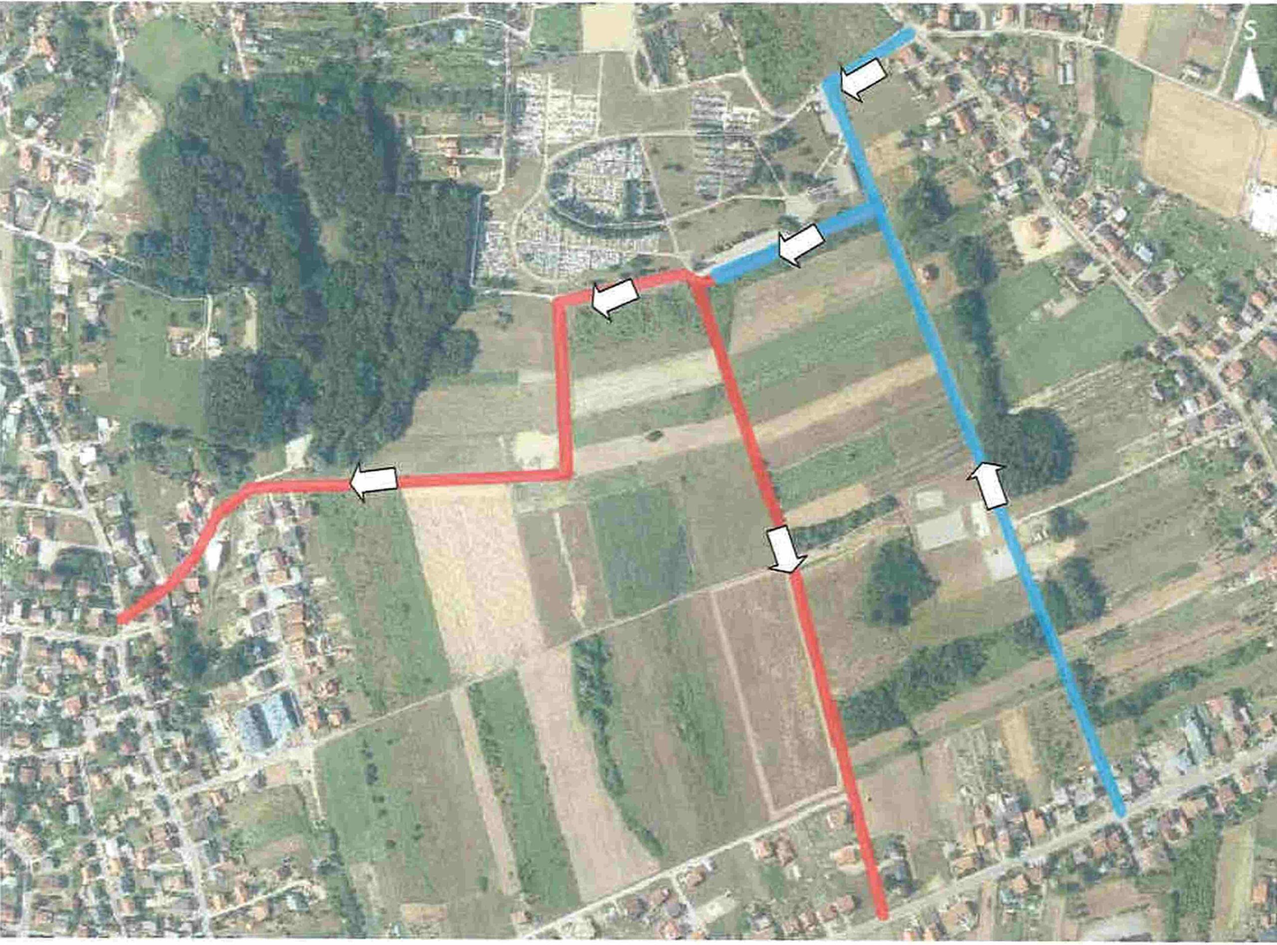 Crvenom bojom označene ulice na koje se jednosmjerno izlazi, dok su plavom one na koje se jednosmjerno ulazi na groblje.