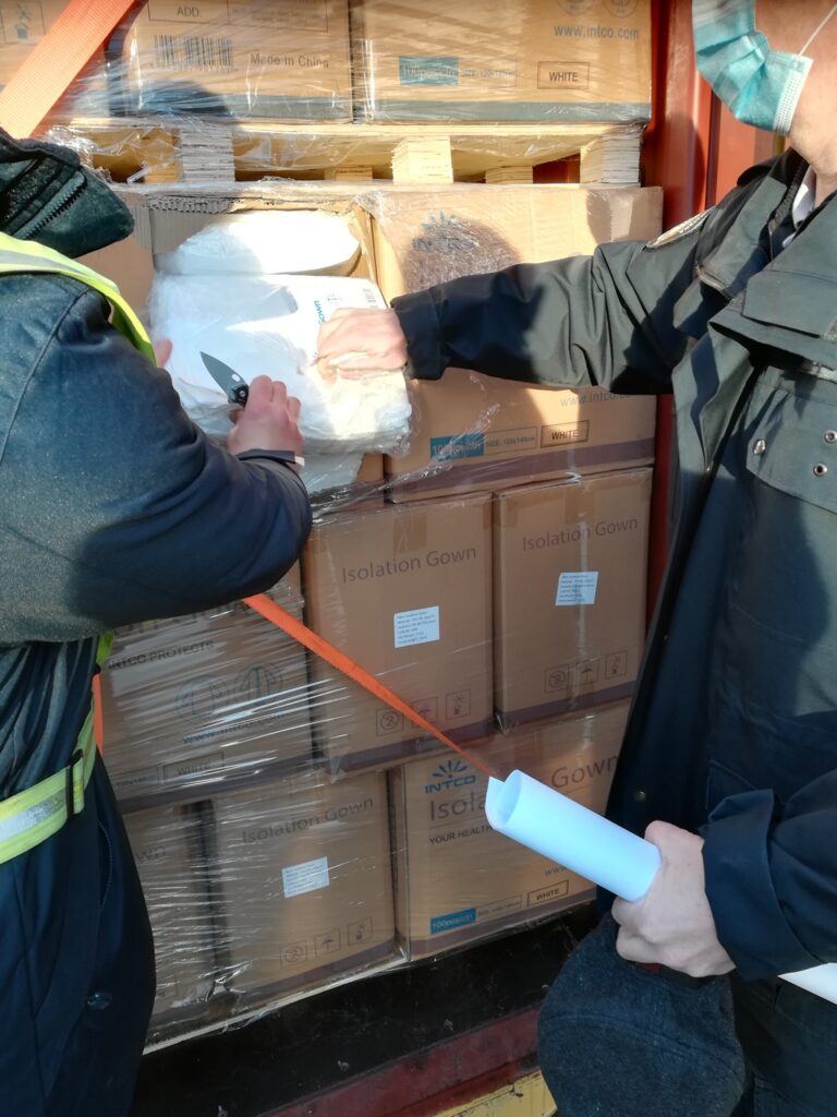 Brodom Rabelais, koji plovi pod malteškom zastavom, dopremljeno je oko 14 tona zaštitnih kirurških kapa (590.000 komada) i odijela (80.000 komada), ukupne vrijednosti oko 207.000,00 USD.