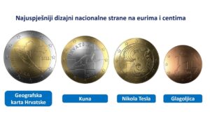 Nakon provedenog natječaja na sjednici nacionalnog vijeća za uvođenje eura, predstaviljeni su  nagrađeni radovi i budući izgled eura i centa.  Kovanica od 2 eura na sebi ima kartu Hrvatske i Gundulićev stih “O lijepa, o slatka slobodo”. Kovanica od 1 eura nosi kunu. Lik Tesle je na kovanicama od 50, 20 i 10 centa dok je glagoljica na kovanicama od 5, 2 i 1 centa. Naručeno je po milijun primjeraka od svake kovanice.Jete li zadovoljni izgledom kovanica?
