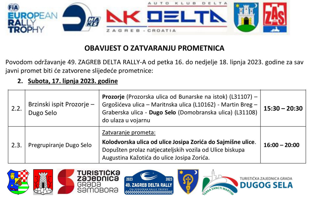 Ovogodišnje izdanje 49. ZAGREB DELTA RALLY-a doživjelo je određeni redizajn. Tako će centar relija, ured, verifikacija, tehnički pregled, park vozača, ceremonijalni start i cilj biti u na parkiralištu pored zapadne tribine stadion GNK Dinamo u Maksimiru. Itinerer s jedanaest brzinskih ispita lociran je u cjelosti na području Zagrebačke županije u Žumebračko samoborskom gorju te gradovima Dugom Selu i Samoboru. Nemjerljiv doprinos ovogodišnjem izdanju relija daju Grad Zagreb, Zagrebačka županija, gradovi Dugo Selo j, Samobor i brojni drugi sponzori. Isto tako svoj obol u tehničkoj realizaciji daju ekipe Hitne medicinske pomoći Zavoda za hitnu medicinu Zagrebačke županije, Vatrogasne zajednice Zagreba, Samobora i Dugog Sela, s pripdajućim lokalnim DVD-ima. Za nesmetano odvijanje natjecanja pobrinuti će se i vučne služe Mišić iz Samobora, Špiček iz Igrišća i Dumić iz Malog Lipovca Sigurnost natjecanja nadzirati će Policijska uprava zagrebačka s policijskim postajama Maksimir, Dugo Selo i Samobora. Posebnu zahvalnost organizator izražava Ministarstvu unutarnjih poslova i Ravnateljstvu policije MUP-a Republike Hrvatske.