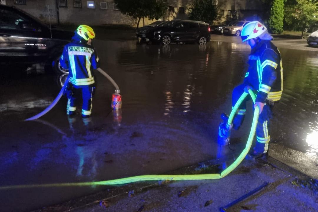 Velike količine kiše koje su pale tijekom dugo najavljivane promjene vremena, sinoć i tijekom noći, još jednom su prouzročile zadržavanje vode na prometnicama i plavljenje dijela podrumskih prostora, u Dugom Selu, pa su niz intervencija imali i dugoselski vatrogasci,  kaže Nikola Tominac načelnik stožera CZ Dugog Sela.