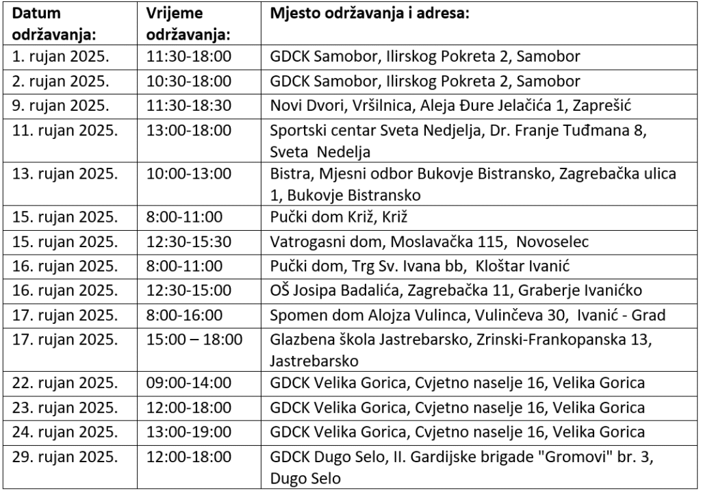 Društva Crvenog križa Zagrebačke županije tijekom rujna provodit će redovite akcije dobrovoljnog darivanja krvi na više lokacija.